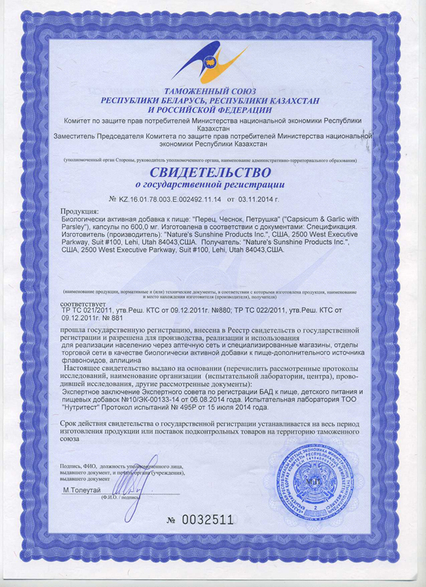 БАД к пище Перец, Чеснок, Петрушка является дополнительным источником флавоноидов, аллицина.