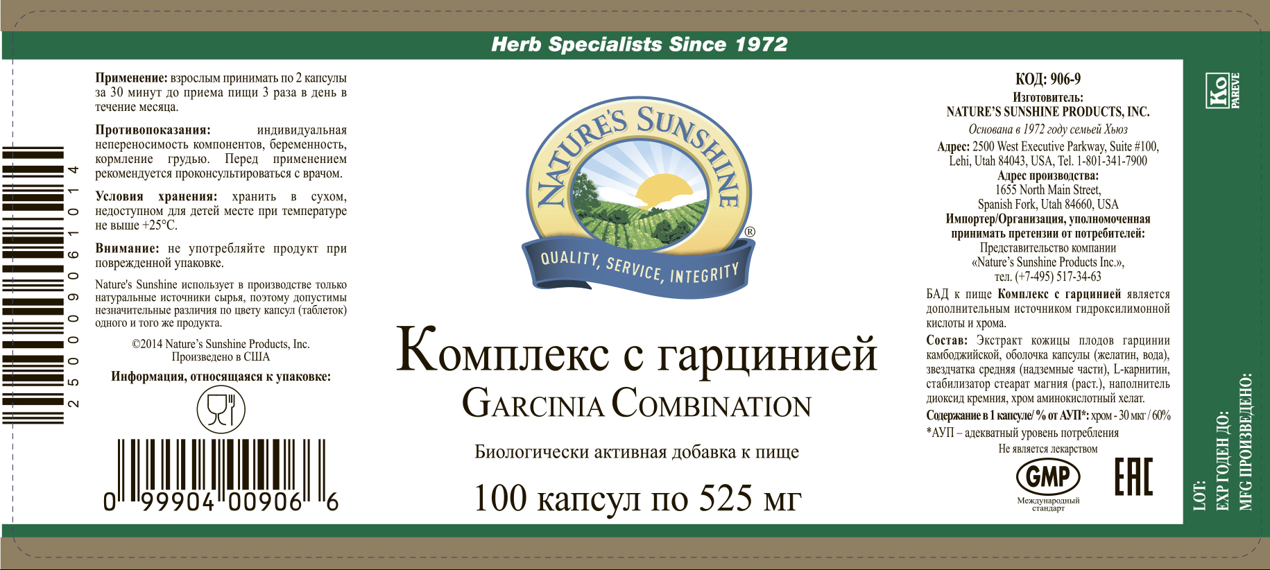БАД к пище Комплекс с гарцинией является дополнительным источником гидроксилимонной кислоты и хрома.