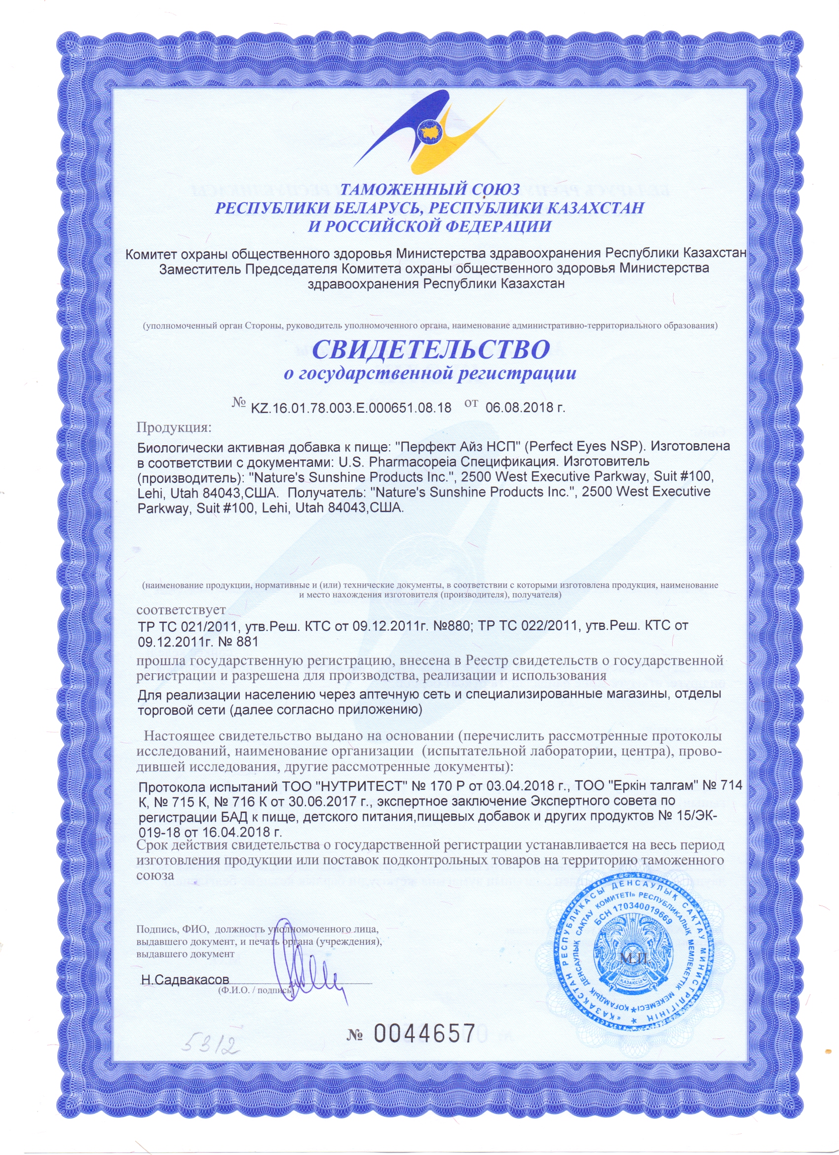 Перфект Айз НСП (англ. идеальные глаза) – это уникальное сочетание питательных компонентов и антиоксидантов, предназначенных для улучшения зрения. Он предотвращает разрушительное действие свободных радикалов, обеспечивает антиоксидатную защиту хрусталику, роговице и сетчатке, а также восстанавливает микроциркуляцию глаза. Перфект Айз НСП является незаменимым компонентом различных программ поддержки зрения. Оказывает иммуномодулирующее и мембранопротекторное действие. Уникальная фито-витаминно-минеральная формула, универсальный антиоксидант. Это наиболее полный и сбалансированный комплекс из представленных на рынке в этом сегменте. Формула создана на основе исследований возрастных расстройств зрения AREDS
