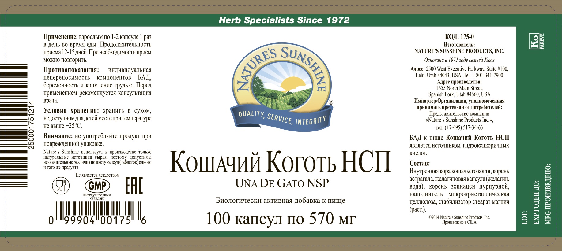 БАД к пище Кошачий Коготь НСП является источником гидроксикоричных кислот.